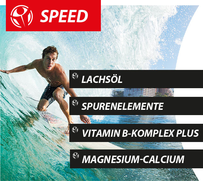 Als Nummer 2 in unserer aufeinander aufbauenden hypo-A Sport-Reihe ist Sport Speed das nach Sport Start folgende Paket. Durch die Versorgung mit Vitaminen, mehrfach ungesättigten Fettsäuren und essentiellen Spurenelementen werden alimentär bedingte Defizite ausgeglichen und ihr körperliches Wohlbefinden vielfältig unterstützt.