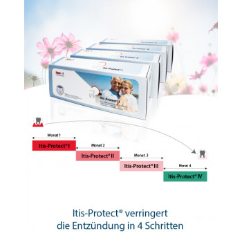 Itis-Protect® II ist das Paket für den zweiten Schritt unserer 4-teiligen Begleittherapie bei Parodontitis. Nach der 4-wöchigen Einnahme von Itis-Protect® I können Sie mit Itis-Protect® II fortfahren. Um eine optimale Wirkung zu erzielen, sollten Sie alle 4 Schritte der Kur vollständig und in der richtigen Reihenfolge (I–IV) durchführen.