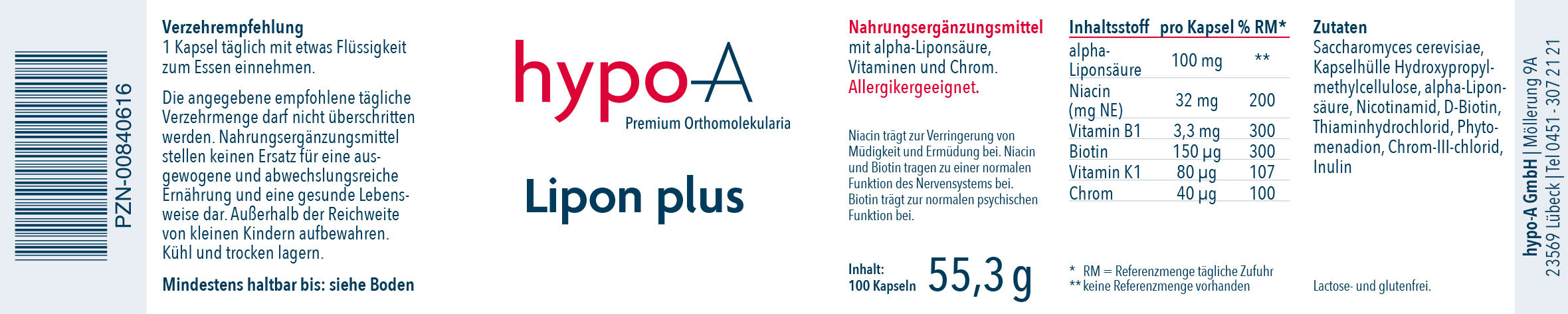 Das „plus“ im Namen von Lipon plus steht für drei Vitamine der B-Gruppe (B1, B3, Biotin), Vitamin K1 und Chrom, die Lipon plus zusätzlich enthält.